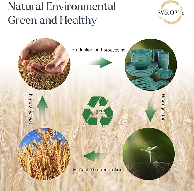 - ā¦ćš£š®š°šøš®š“š² šš»šš¶š±š²ć - Wrova 28pack wheat straw dinnerware sets contains 4pcs 10inches wheat straw plates with deep edge,4pcs 26oz wheat straw bowls,4pcs 12oz wheat straw cups,4pcs sauce plates and 12pcs cutlery as well. All of them are bpa and lead free,lightweight and easy to clean. Ideal for new apartment and dormitory.