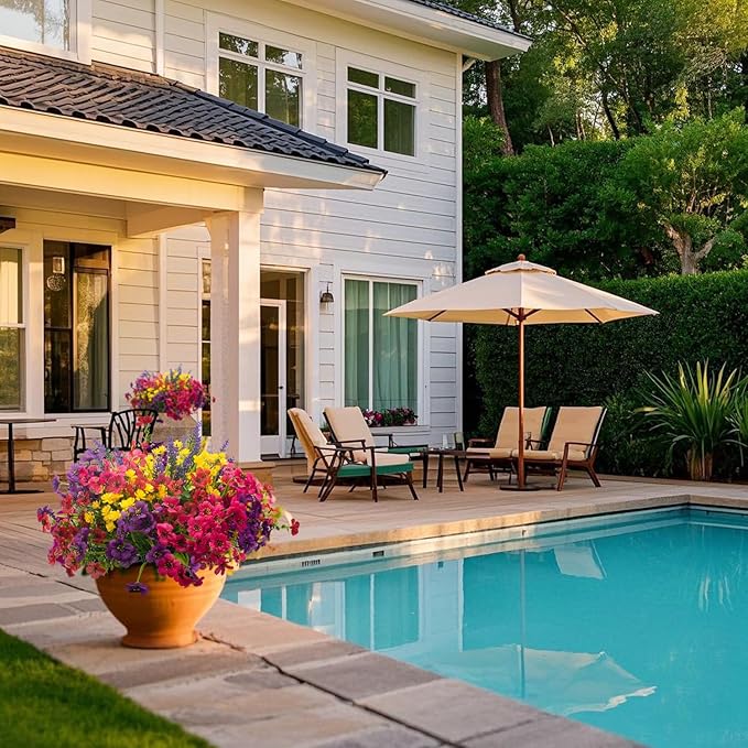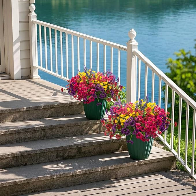 - UV Resistant: Designed for outdoor use, these fake flowers are UV resistant, ensuring their vivid colors won't fade or discolor when exposed to sunlight.