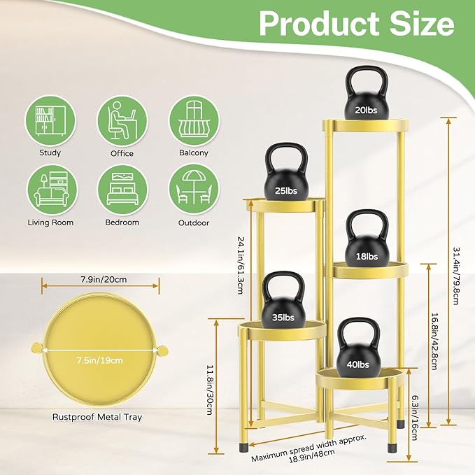 - 7.9-Inch Wide Trays with Rim: This tall plant stand features 7.9-inch round trays, suitable for pots up to 7.5 inches wide. Each tray is designed with raised edges that guard against spills and tipping, keeping your plants safe and steady