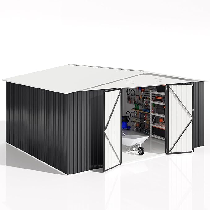 VIWAT 12x14 FT Outdoor Storage Shed, Garden Shed with Updated Frame Structure and Lockable Doors, Metal Tool Sheds for Backyard Garden Patio Lawn, White