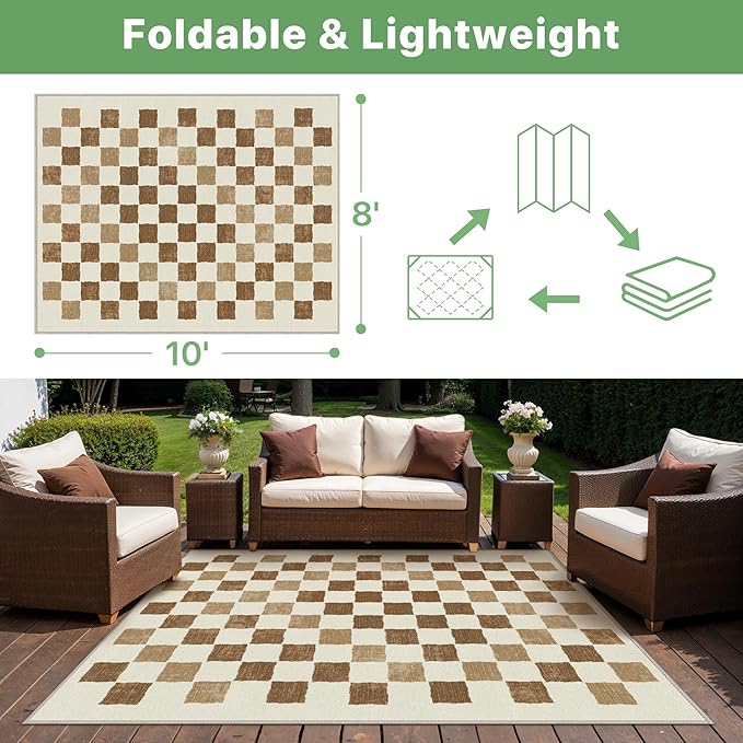 GENIMO Outdoor Rug for Patio Clearance, 8'x10' Reversible Plastic Straw Rugs, Lightweight Waterproof RV Camping Mat for Camper, Balcony, Deck, Backyard, Picnic, BrownBeige