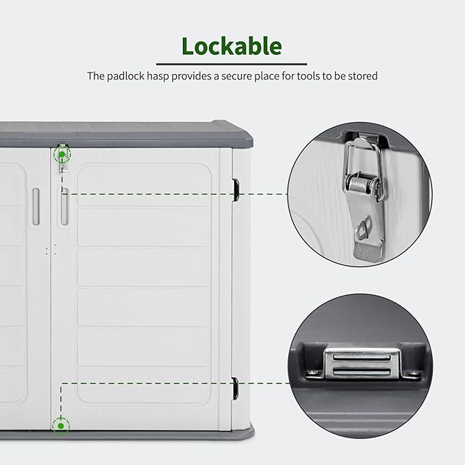 - Double Panels: The shed outdoor storage features double panels that won't easily bend or puncture