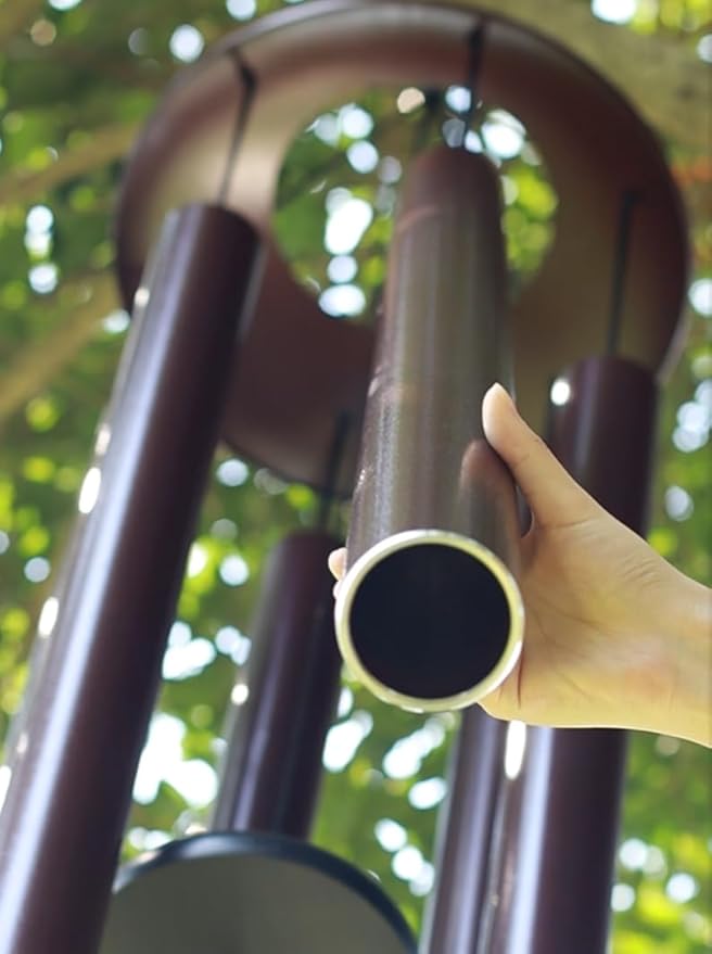 - Metal Wind Chimes - The extra large metal wind chime is made entirely of aluminum ,not only the six tubes,also the hook,the top part and the wind chimes pendulum,all durable anodized bronze finish.Thick tubing wall creates a longer lasting deep tone.Each tube is precision tuned to pentatonic scale.