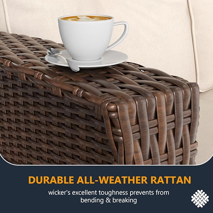 - DURABLE & WEATHERPROOF: Made from metal frame and PE wicker, the UV resistant material will not fade even in sun, the solid construction allows you to enjoy outdoor space year round, without worrying about harsh conditions.