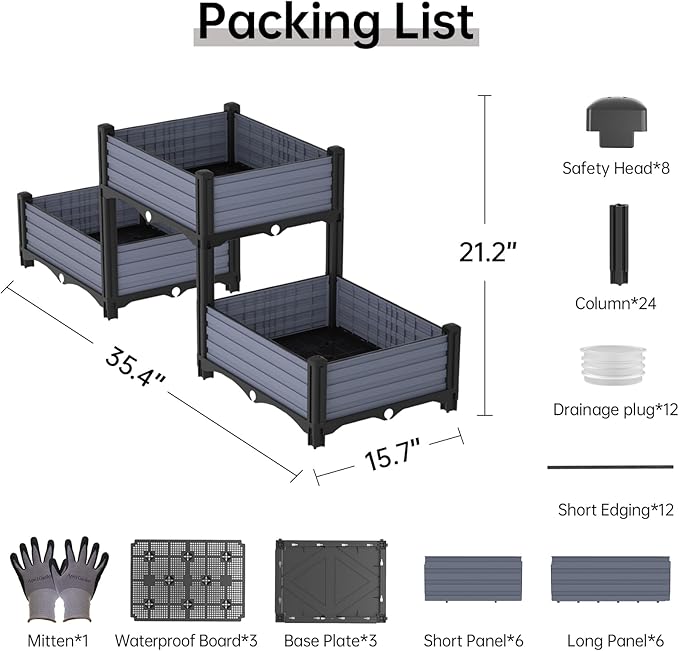 - Quick and Easy Assembly: The simple assembly process ensures you can set up your planter box in no time. With clear instructions included, no special tools are required. The smooth plastic surface is easy to clean, and the modular design allows for quick disassembly when needed.
