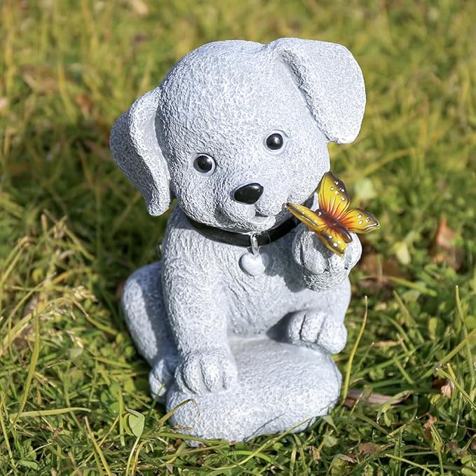 - Materials & Processes:Our garden dog statues are made of sturdy, waterproof resin that isn't afraid of the elements, so you can leave them outside all year round! Whether it's the playful charm of a cat or the vibrancy of a butterfly, every.