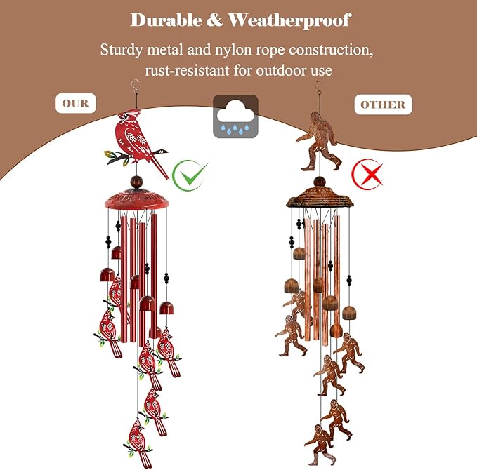 - Thoughtful Gift for Bird & Nature Lovers: An ideal present for birthdays, holidays, or housewarmings, these cardinal wind chimes delight birdwatchers and outdoor enthusiasts. Their cheerful design and calming sounds bring joy and serenity to any home, making them a heartfelt and memorable gift.