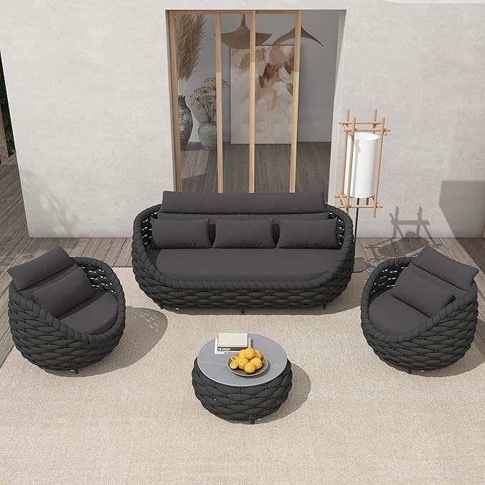 - 【Unique Design】The distinctive characteristic of this outdoor couch is the spherical and curving base,which necessitates highly expert artisans to weave. The sturdy curved armrest and backrest are designed for better upper-body support. The wide baseplate that’s tightly lined up and the reinforced legs of the outdoor seating ensure sturdy construction and a large capacity that goes as high as 400LBS per seat.