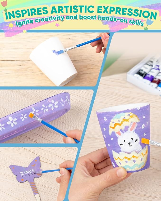 - 12 Vibrant 12ml Paint Tubes:The kids plant growing kit includes 12 paint tubes in different colors, each 12ml, offering a rich palette and lasting use. The paint volume is sufficient for multiple creations, and the caps can be securely closed to prevent drying, allowing children to resume their artwork at any time.Paint your own flower pot now.