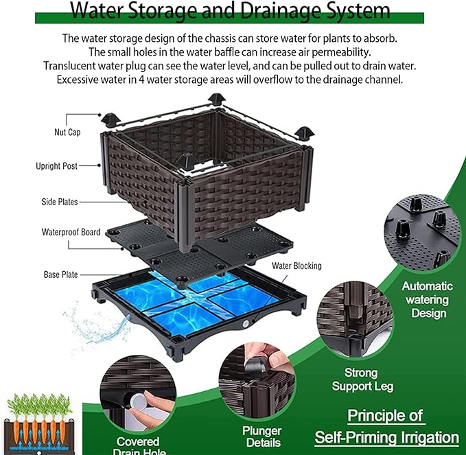 - Visual Drainage Control:This garden box includes a visual drain plug to monitor water levels, prevent water accumulation during rain, and avoid root rot from overwatering.
