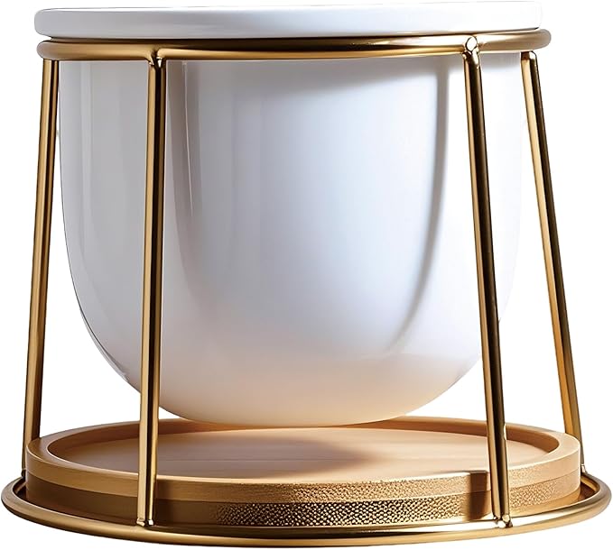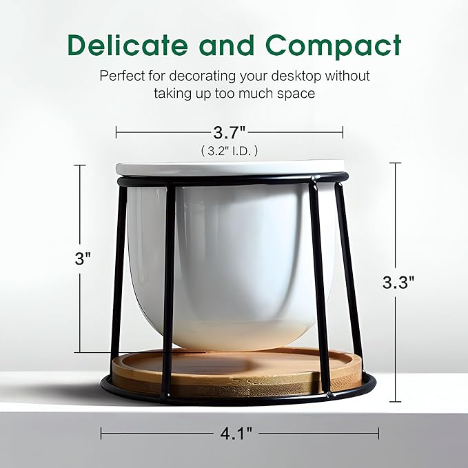- 【Floating Design】Featuring a white ceramic flower pot as the main body, paired with a metal frame and bamboo tray, this design undergoes multiple manufacturing processes to achieve a sleek, modern aesthetic. Plants grown within appear to float in mid-air, making it ideal for decorating indoor windowsills, desks, coffee tables, office desks, kitchen islands, and more.