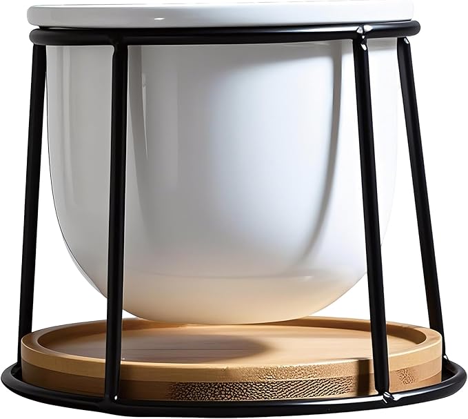 - 【Floating Design】Featuring a white ceramic flower pot as the main body, paired with a metal stand and bamboo tray, this design undergoes multiple manufacturing processes to achieve a sleek, modern aesthetic. Plants grown within appear to float in mid-air, making it ideal for decorating indoor windowsills, desks, coffee tables, office desks, kitchen islands, and more.