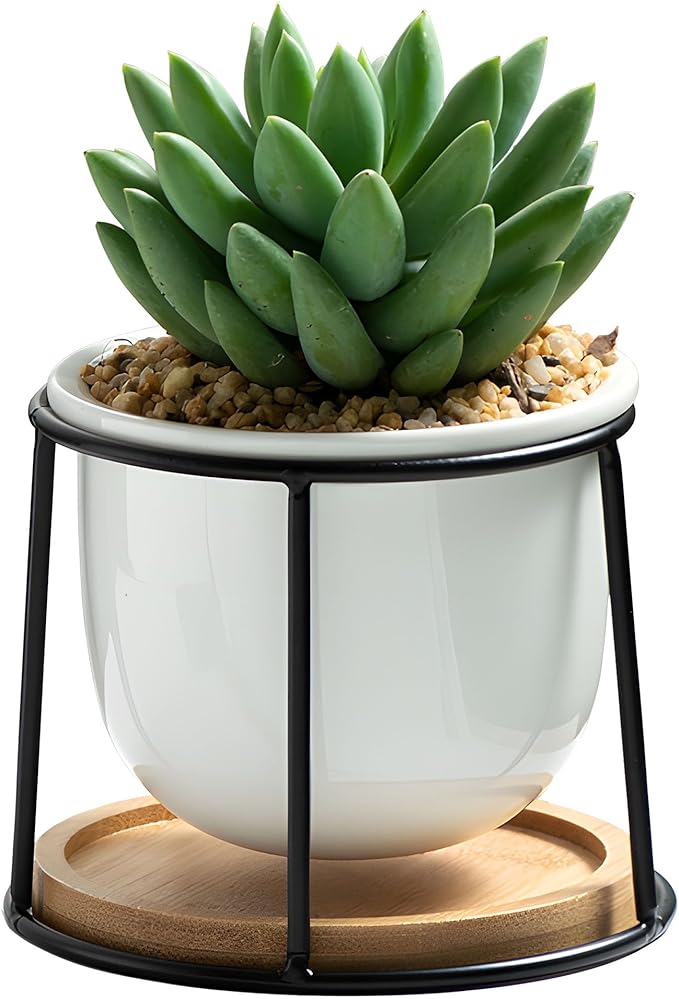 - 【Drainage System】The bottom of the small indoor plant pot features drainage holes, paired with a removable bamboo tray to prevent overwatering and avoid water accumulation on the table.