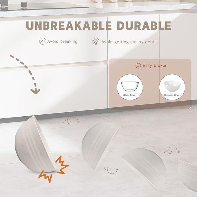 - Easy to Use and Clean: The non slip threads on the outer wall of the wheat straw dinnerware can not only avoid slipping, but also have a nice anti scalding effect; With smooth surfaces, the dishes are not easy to stain, but easy to clean; Suitable for kids, toddlers, adults.It's lightweight and reusable,also suitable for traving.
