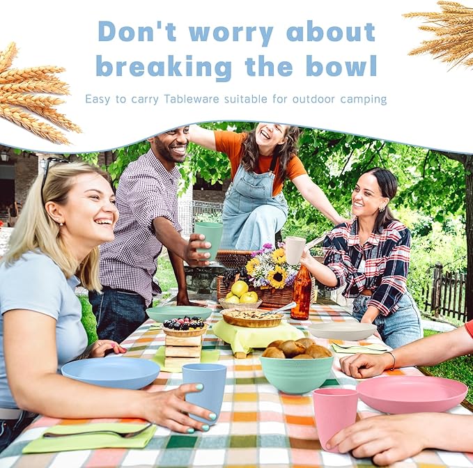 - Multiple Uses: The wheat straw dishes can be used to serve pasta, sandwich, bread and butter, dessert, soup, rice, salad, appetizer, drinks at home, kitchen, school, office, outdoor traveling, picnic, party, camping, RV and more, for your friends and family on housewarming, wedding party, Thanksgiving, Christmas and New Year's Day.