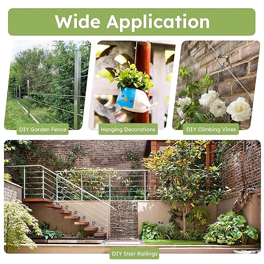 - Perfect for Garden and Decorative Use: Ideal for seasonal plant supports, garden fencing, and lightweight decorations, this wire rope kit offers a practical solution while adding subtle elegance to your outdoor and indoor spaces