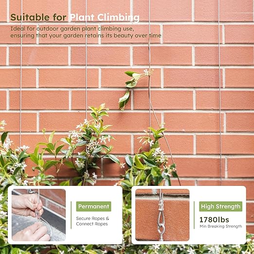 - Perfect for Garden and Decorative Use: Ideal for seasonal plant supports, garden fencing, and lightweight decorations, this wire rope kit offers a practical solution while adding subtle elegance to your outdoor and indoor spaces