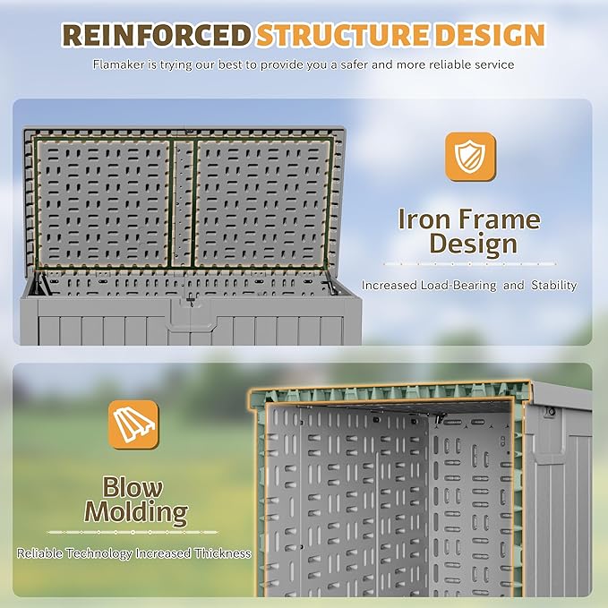 - [As a Seat] Flamaker’s large outdoor storage deck box, not only guarantees the storage capacity, but can be used as a seat, which can be used by up to 2 people
