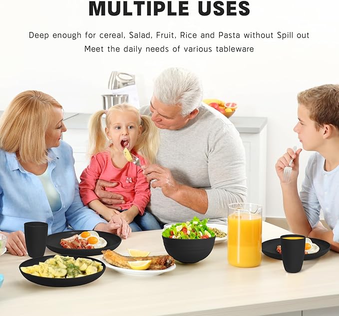 - 33 pieces plastic tableware set: Wreathe tableware set contains 8 dinner plates (9.8 inches), 8 dessert plates (7.8 inches), 8 bowls (24 oz) and 8 cups (12 oz), Includes a cleaning brush that cleans cups and cutlery well, practical and stylish design perfect for family, party, camping and RV use.
