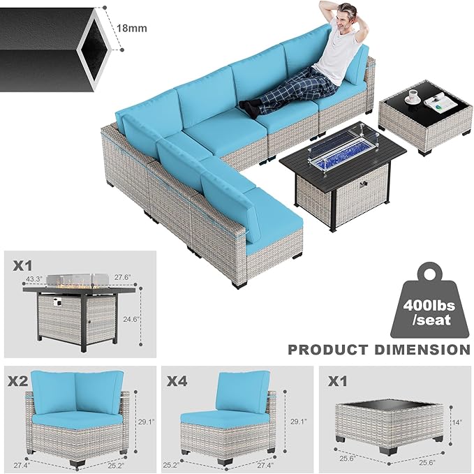 - Size : M-8-sofa/fire pit