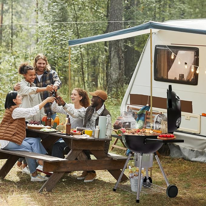 - Integrated Cover: The BBQ grill features an integrated lid, allowing you to grill hands-free without additional supports
