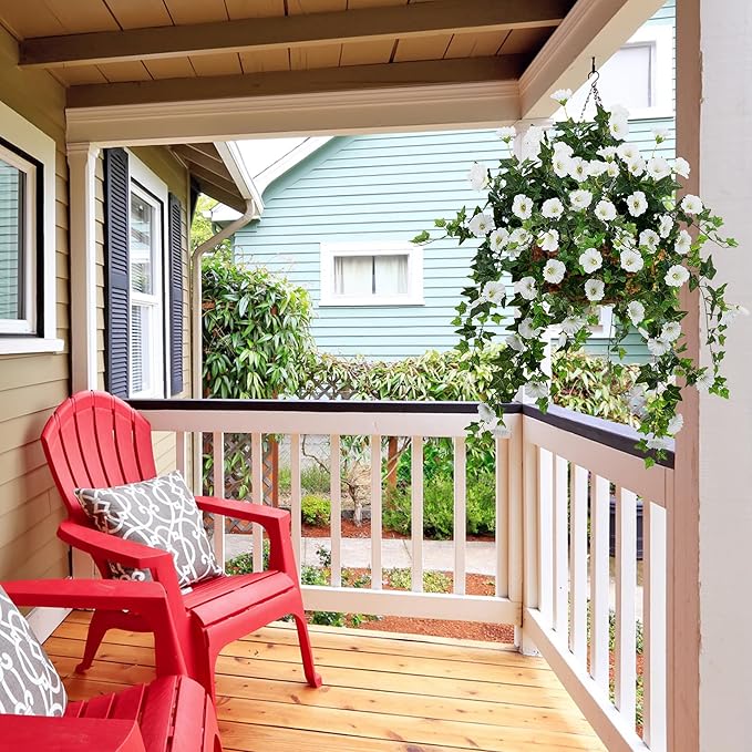 - Versatile Decor:Artificial Petunias Hanging Flower glories to enhance your outdoor garden, decorate your indoor balcony, window, or wall, or even hang them in baskets for a realistic touch to your porch or front yard.