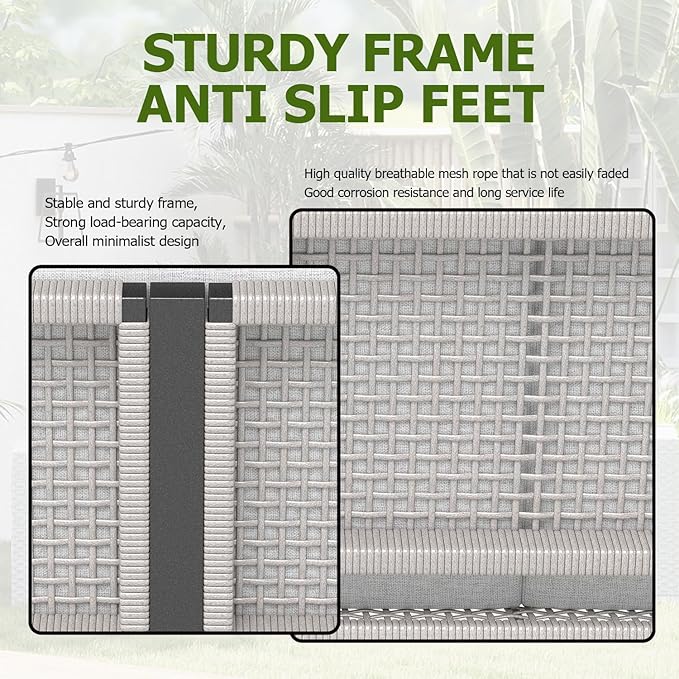 - Weather-Resistant & Durable: Crafted with polypropylene fiber and high-density PE webbing, this Aluminum Patio Furniture Set resists UV rays, water, and tears. The sturdy woven design supports up to 500lbs, ensuring long-lasting performance in any outdoor environment.
