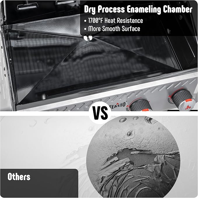 - Porcelain Enamel Body: The outdoor propane grill got premium porcelain enameled stove body can withstand temperatures up to 1700°F, offering excellent heat retention. It also prevents surface peeling, enhancing the stove's durability and overall aesthetic appeal