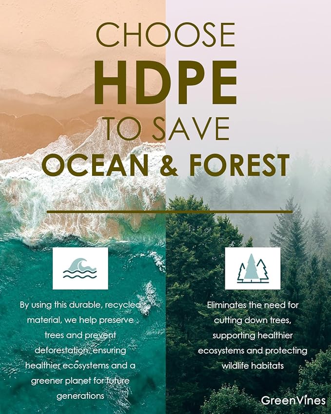 - 【Premium HDPE】Crafted from GreenVines HDPE (High-Density Polyethylene), this outdoor bench outperforms traditional metal and wood materials. It is waterproof, weather-resistant, and fade-resistant, ensuring it won’t rust, chip, peel, crack, or rot, even in harsh outdoor conditions