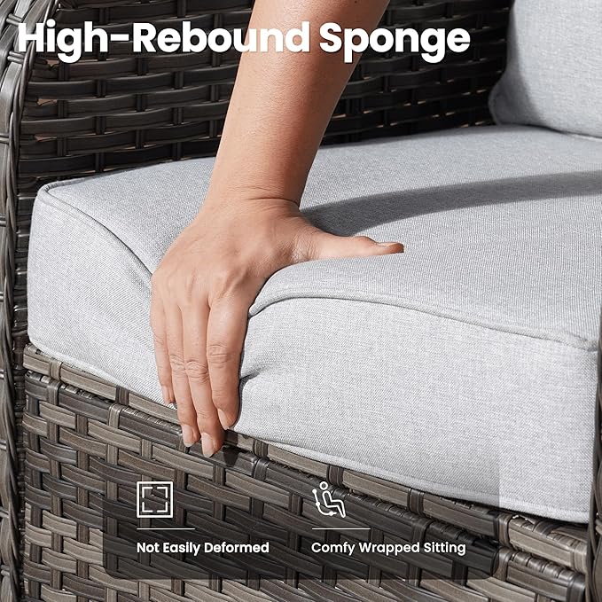 - Comfy Thick Cushion: Made of all-weather high-density waterproof coating fabric and upgraded thickened cushions, it has high resilience, good breathability, wear resistance and tear resistance. The cushion cover is zippered and can be removed for washing, and simple and convenient daily maintenance
