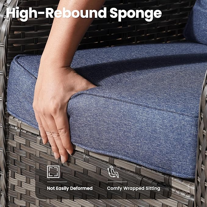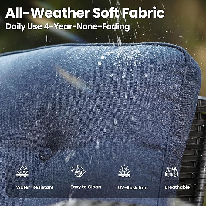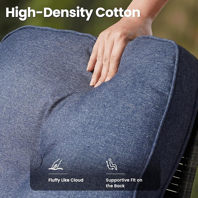 - Comfy Thick Cushion: Made of all-weather high-density waterproof coating fabric and upgraded thickened cushions, it has high resilience, good breathability, wear resistance and tear resistance. The cushion cover is zippered and can be removed for washing, and simple and convenient daily maintenance