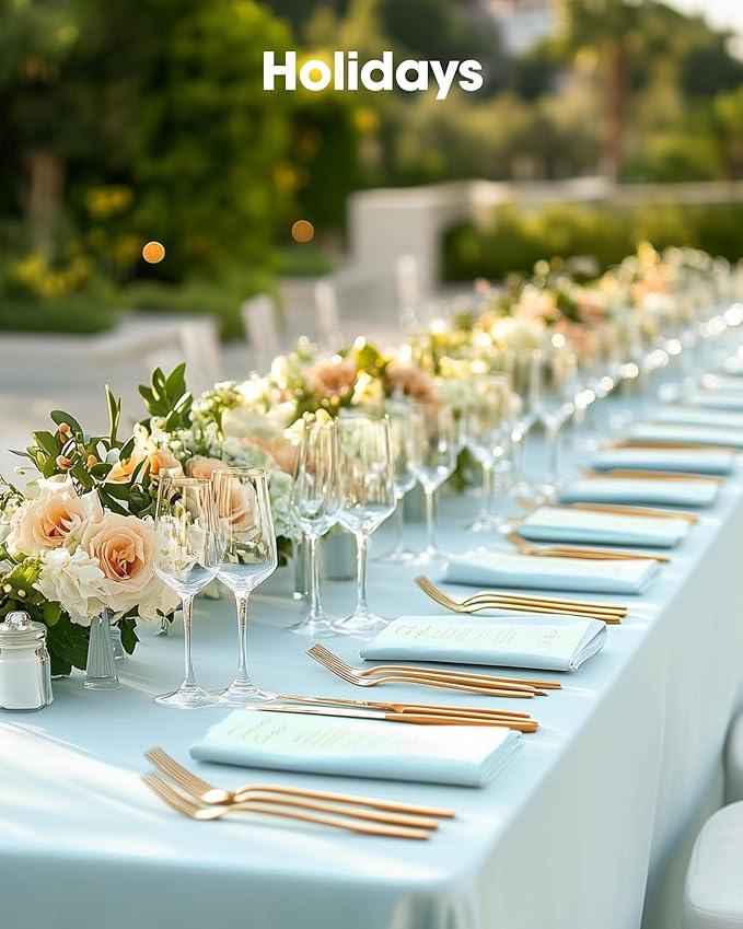 Pureegg Plastic Table Cloth Disposable 8 Pack, 54 x 108 Inch Table Cloths, Easter Party, Picnic, Wedding, Decorative Tablecloths, Rectangle, Baby Blue Plastic Cover, Leakproof & Sturdy, Light Blue