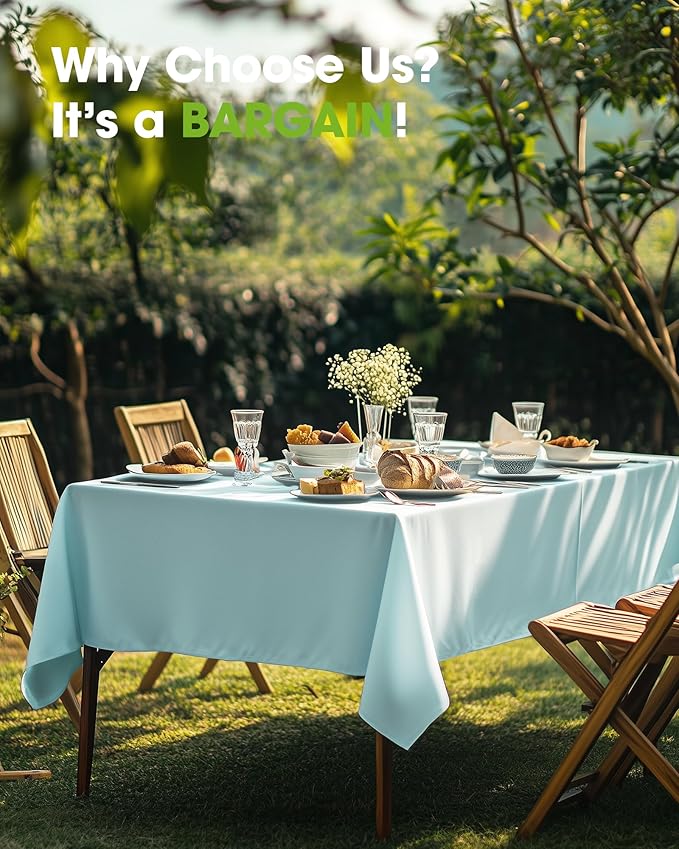 - HIGH-QUALITY TABLE CLOTHS: Pureegg rectangle tablecloths are crafted from thickened PEVA material, ensuring excellent quality. These table cloths in rectangle shape are sturdy, waterproof, and resistant to stains, effectively protecting your table from spills and messes without easily tearing.