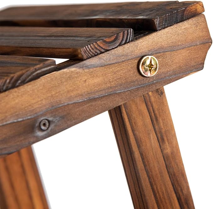 - [Stable Wood Structure] Made of full solid fir wood, our plant rack is good weather resistance and can be used for a long time. It has smooth edges to protect your hands from scratches. In addition, the plant stands have been carbonized to reduce the water content of the wooden plant stands by half, improving resistance to deformation. Moreover, the parts are tightly connected by screws to add stability and firmness.