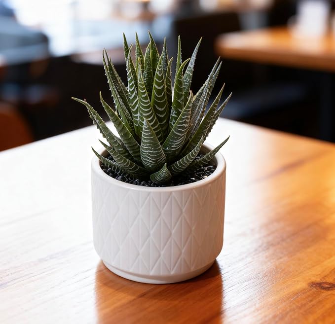 - COMPACT SIZE: Ideal for Small Spaces. Measuring 6" high in a 4"x4" ceramic pot, this fake succulent is perfect for desktops, coffee tables, and bookshelves. It's ideal as an office desk plant, windowsill plant, or as kitchen countertop decor.