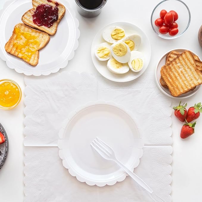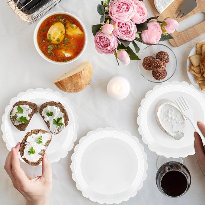 - Our white scalloped paper plates can be discarded directly after use, saving your time and energy and making life more comfortable, which allows you to spend more time enjoying the party with your family and friends.Please do not microwave the white scalloped disposable plates.