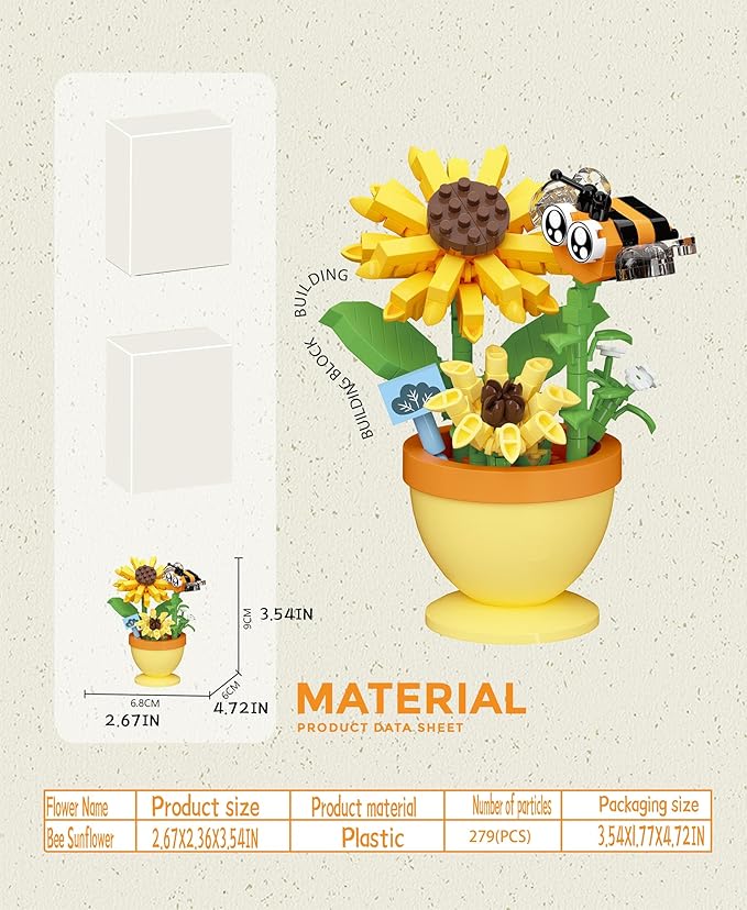 - Nature's Whimsy in Every Piece:Transform your space with our enchanting collection of insect-themed building block potted plants. Featuring delightful creations like bees, dragonflies, butterflies, and sunflowers, each set brings a playful touch of nature indoors, creating a lively atmosphere where creativity and whimsy bloom.
