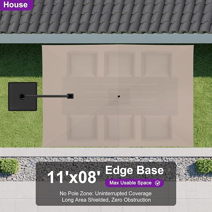 PURPLE LEAF 11' X 8' Swivel Outdoor Patio Aluminum Umbrella with Base Left-right Tilting Cantilever Offset Umbrella with UV Resistant Heavy Duty Fabric for Deck Pool Patio Backyard, Sand Dune