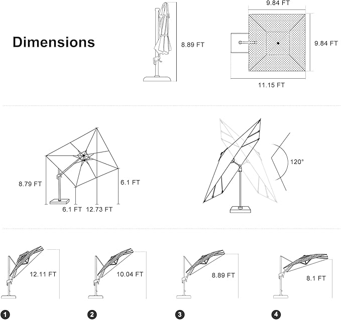 - Upgraded Swivel Function: This deck umbrella features a 360° rotation, a canopy that tilts left and right, and 6 adjustable positions to deliver optimal shade from every angle. Enjoy all-day comfort and a perfect outdoor experience.