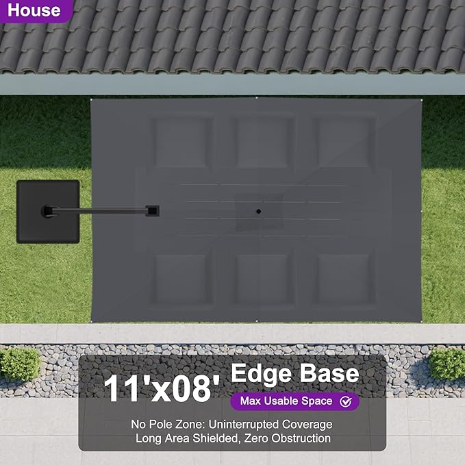 PURPLE LEAF 11' X 8' Swivel Outdoor Patio Aluminum Umbrella with Base Left-right Tilting Cantilever Offset Umbrella with UV Resistant Heavy Duty Fabric for Deck Pool Patio Backyard, Graphite Grey