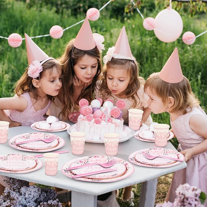 - Coquette Bow Design: The girl theme happy birthday to you tableware set features pink bow patterns and text, elegant and beautiful, with a simple and generous design that makes people feel relaxed and comfortable. The pink bow design bring elegance and sparkle to your celebrations and everyday table settings. It will bring you unforgettable memories. The exquisite pink bow tableware adding a touch of princess flavor to the birthday party.