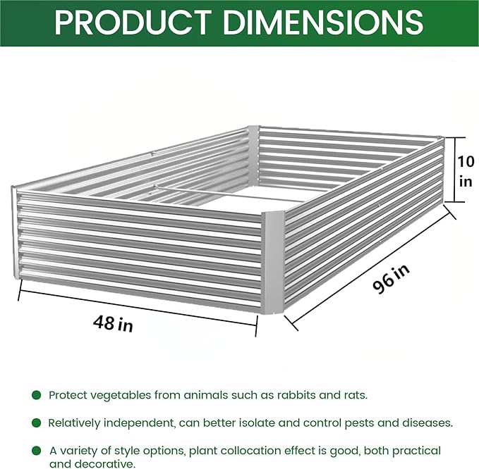 - Easy to assemble: The raised bed has simple structure, we will provide clear instructions to shorten your assembly time.