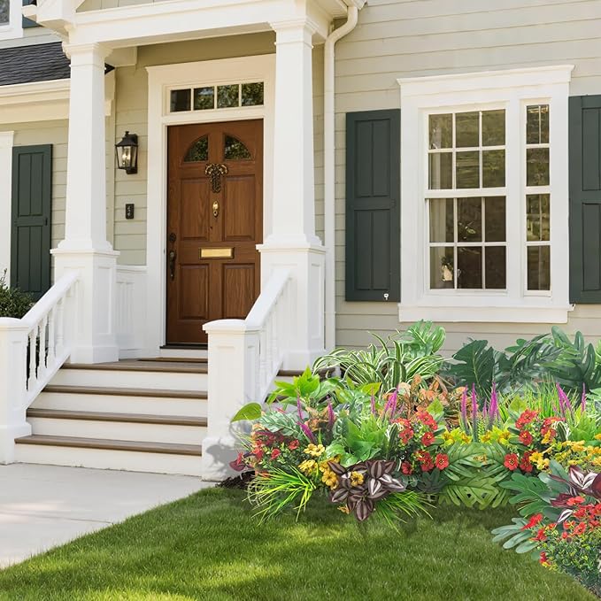 20PCS Fake Flowers UV Resistant Artificial Plants & Faux Shrubs - Outdoor Plastic Greenery Stems for Garden Porch, Window Box Planter, Home Decor(Pot Not Included)