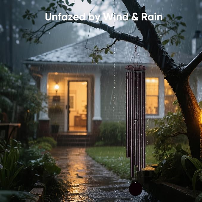- [Fearless of Sun and Rain] Our long wind chimes for outside are crafted from top-grade aluminum with exquisite craftsmanship. The top cover abandons traditional wood in favor of more durable metal materials, truly standing up to sun and rain, ensuring long-lasting enjoyment.