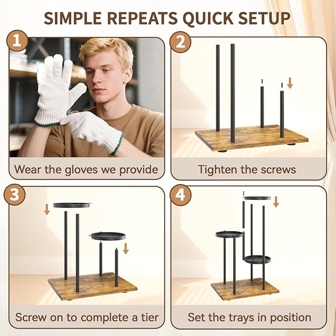 - 【Simple, Step-by-Step Assembly】Assemble your tall plant stand quickly by repeating just a few basic steps with the help of the clear video guide and labeled parts. Unlike other products, we also provide gloves to keep your hands clean throughout the process.