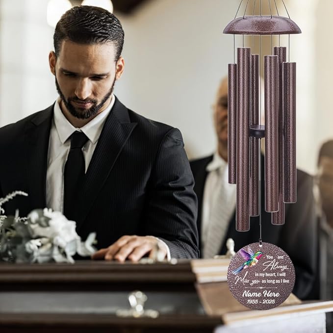 - 🌼🌼Personalized Sympathy Wind Chime: The chime can have a photo and custom name added to it, and printed with the sentiment: "You are always in my heart and I will miss you as long as I live." Let them know you are thinking of them. The sentiment conveyed to a grieving heart during such a difficult time is so touching.