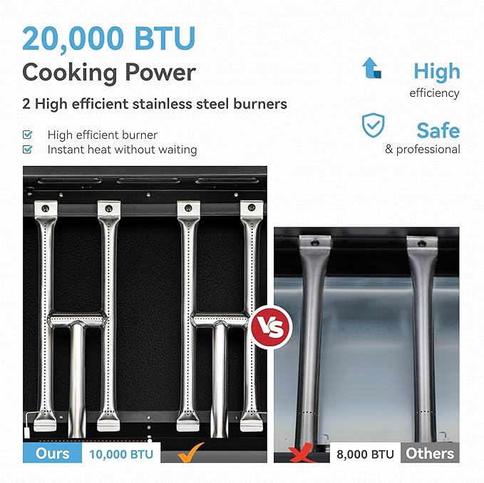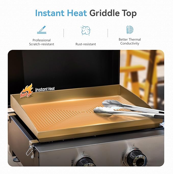 - Ceramic-coated Griddle Top: Engineered with state-of-the-art technology, our ceramic-coated griddle top boasts better high-temperature resistance, corrosion resistance, and scratch resistance. Note that the griddle top should be seasoned before use