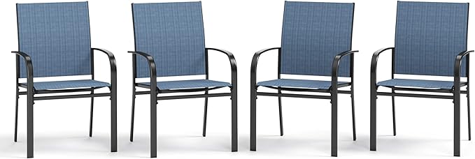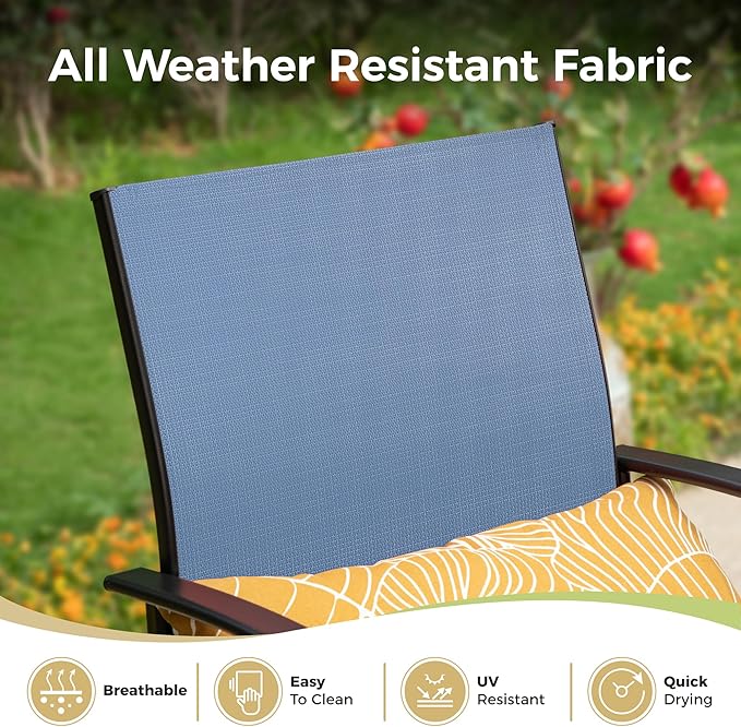 - COMFORTABLE TEXTILENE FABRIC: Our outdoor dining chairs use unique textile fabric to provide good airflow and contour for your body. Each chair is UV resistant and fast drying, making it durable and easy to clean. The smooth and curved armrest conforms to the ergonomic design, and the well-ventilated seat means that you won't sweat even if you sit for a long time. Courtyard furniture chairs are suitable for year-round use