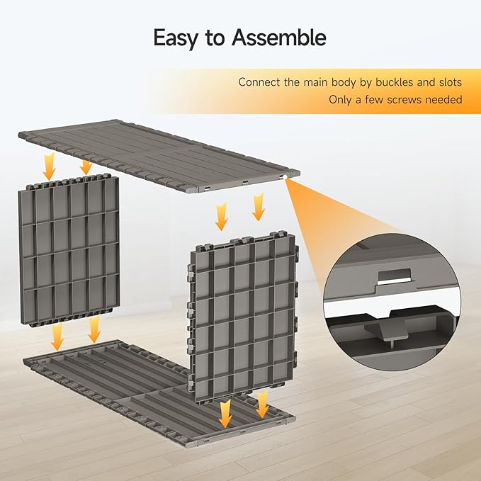 - Assembly and Customer Service: Our outdoor storage cabinet is easy to assemble. You can directly connect the main body by buckles and slots, and only a few screws are needed. If you encounter any issues while using the shed, our dedicated customer service team is always ready to assist.