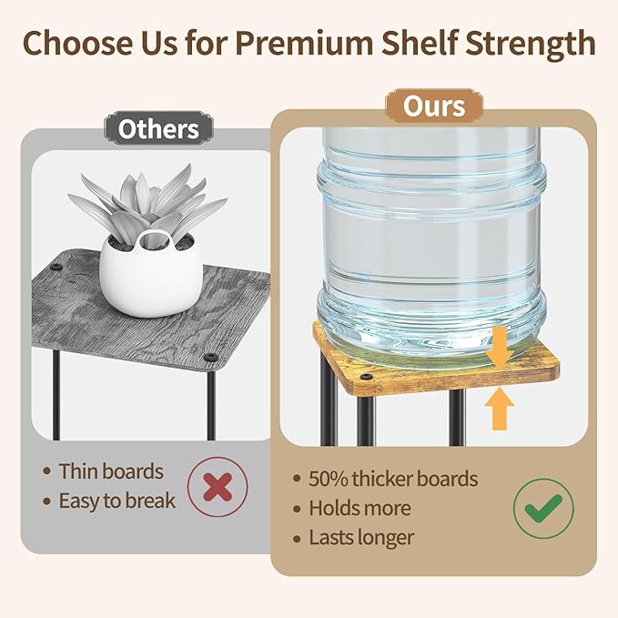- 【Strength You Can Trust】Built with a thickened iron frame and sturdy wooden boards, the plant stand wood offers 30% more load-bearing capacity. It safely supports even heavy 9-inch pots without wobbling. No more worries about tipping or collapse—just peace of mind for your beloved plants.